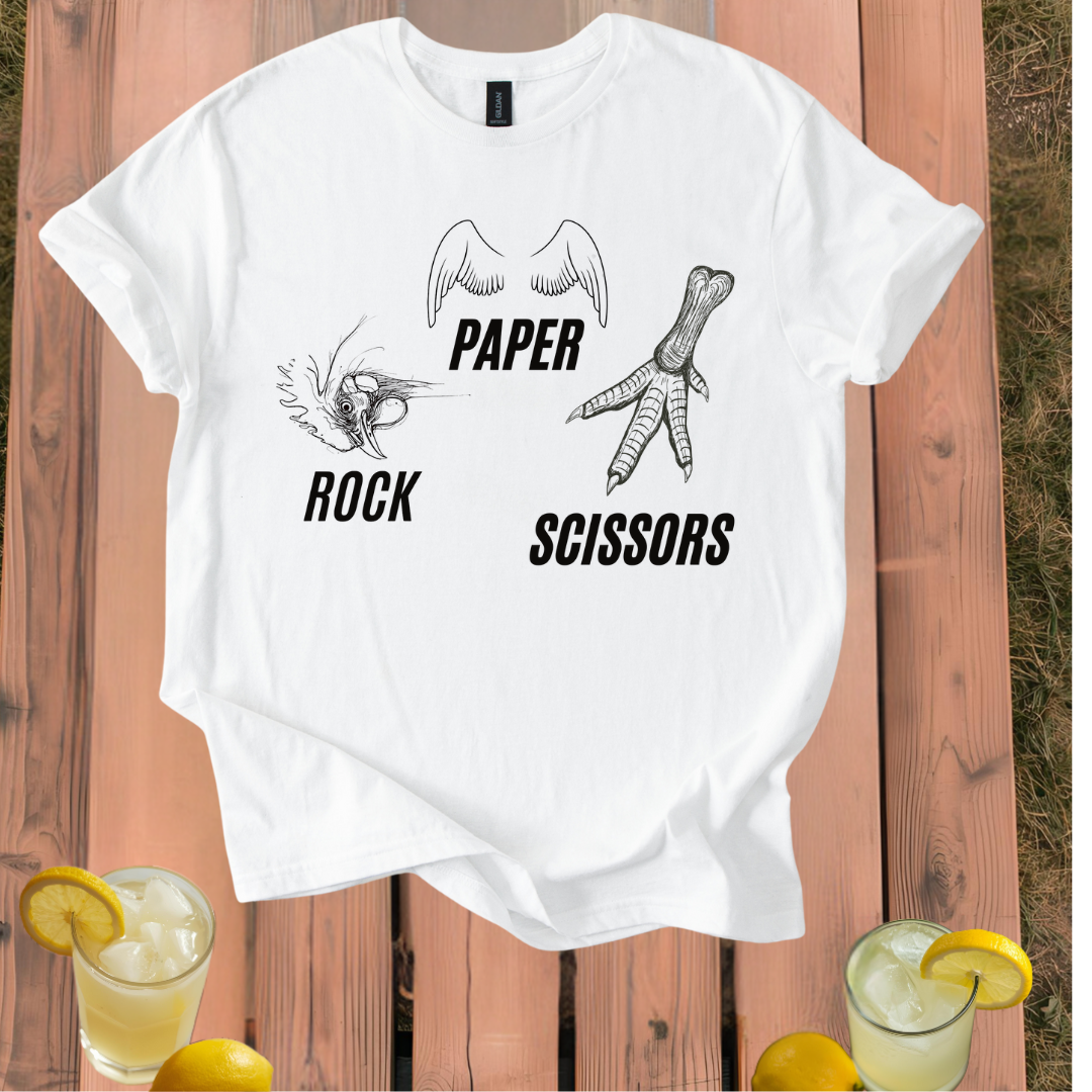 Rock, Paper, Scissors Chicken T Shirt Unisex